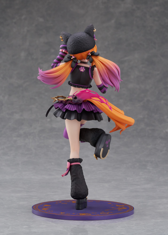 From the game “Umamusume: Pretty Derby.”“Mayano Top Gun” takes flight in her Halloween costume[Rockin'☆MewMeow]!Black cat Maya takes off in an adorable pose based on her victory stance! Her perfectly executed wink fully expresses her lovable charm. The hat and leg warmers feature a fluffy fur texture for a warm, cozy finish. Vivid pink waistcloth, gold chains, and hat earrings add accents, creating a punkish vibe. The frilly skirt boasts ample volume, with each tier featuring a different design that catches the eye. Cute cat-inspired icons are scattered throughout—on her waist, shoe soles, hair accessories—making her enjoyable to view from behind too. Her softly flared twin tails, featuring gradient coloring, offer a fresh twist on her usual style. Experience the cute Mayano Top Gun in “ROCK” right in your hands!© Cygames, Inc.※開発中の商品画像につき、実際の商品とは異なる場合がございます。